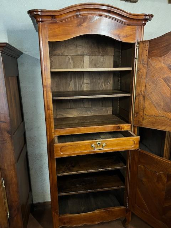 Descritpion : Homme debout à chapeau de gendarme en merisier de la région de Janzé côté à 3 panneaux en châtaignier clair. Hauteur:2M32 largeur:1M02 profondeur:57cm